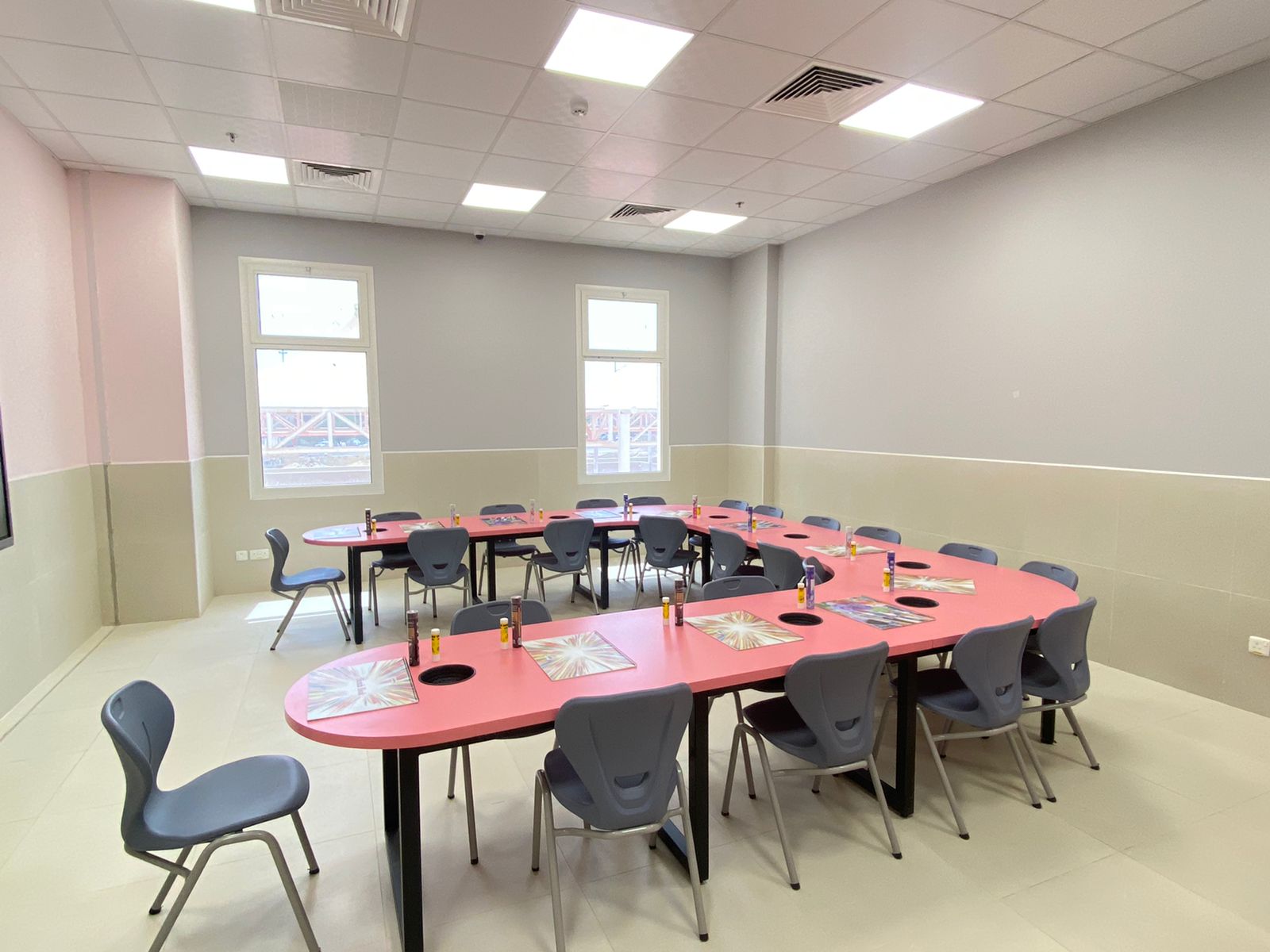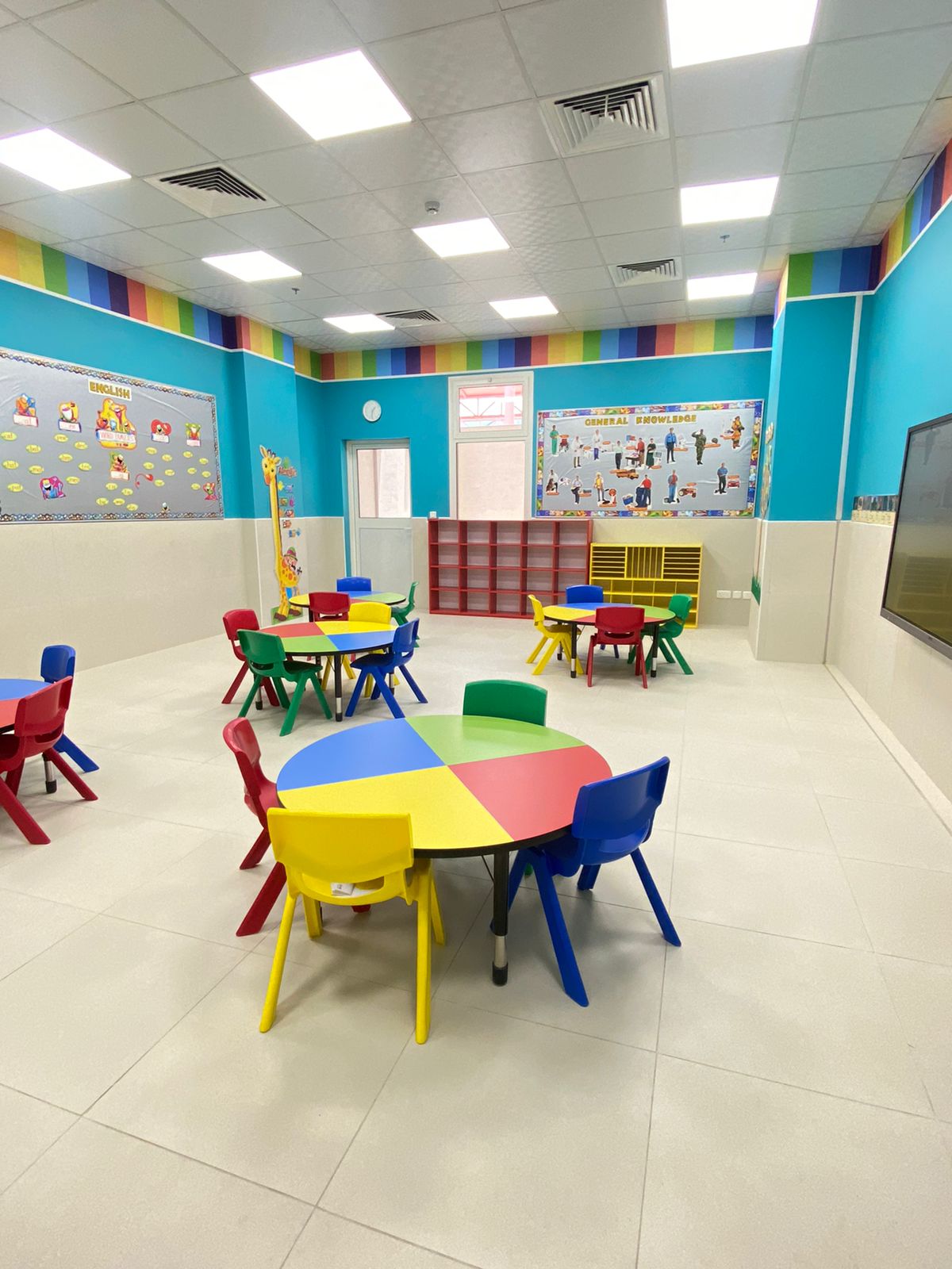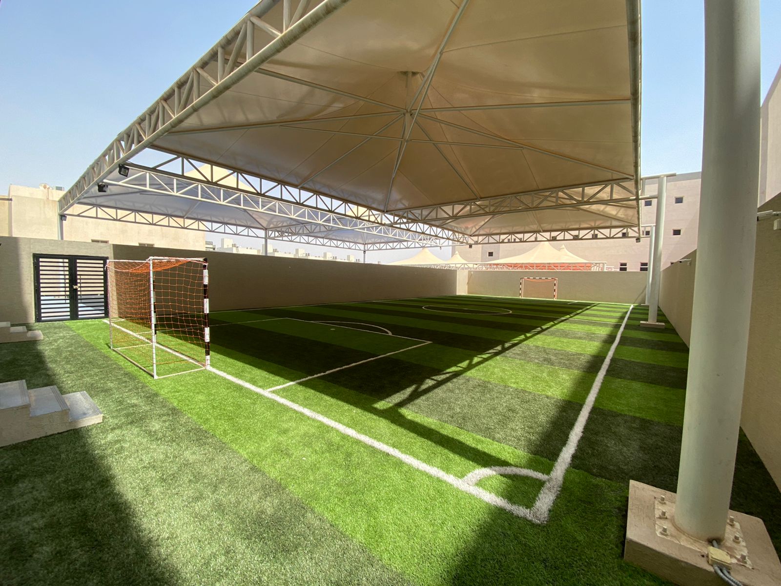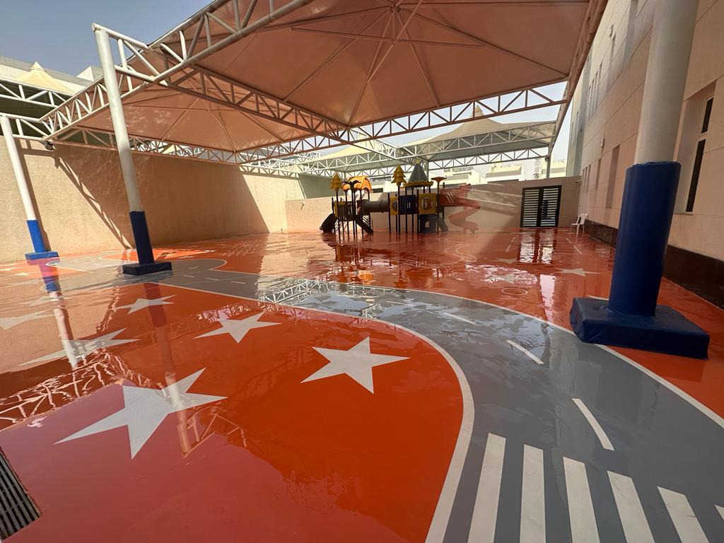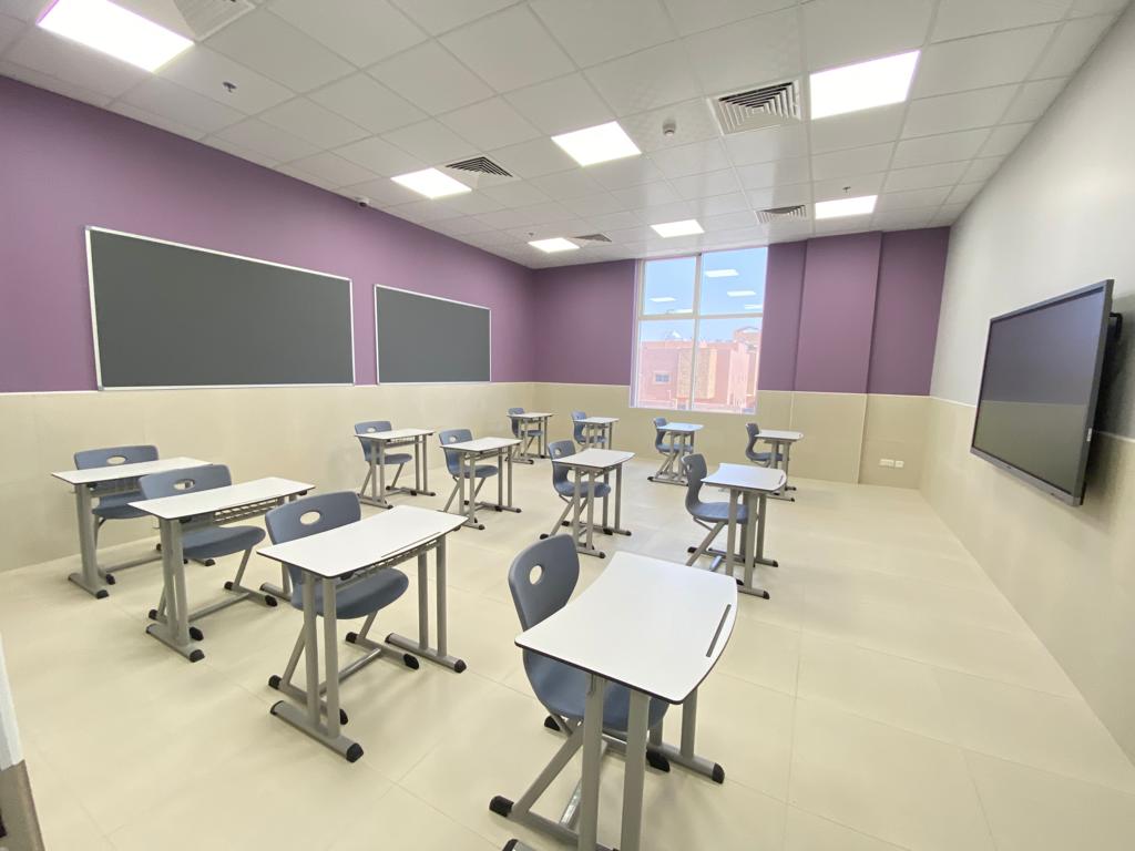 مباني نموذجية بمرافق تعليمية حديثة من صفوف واسعة ومدعومة بالتكنولوجيا الحديثة وملاعب للاستعمالات المتعددة ومسرح مدرسي